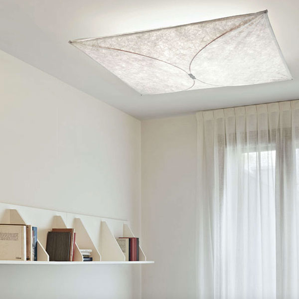 Lampada da parete o soffitto a luce diffusa. Diffusore in tessuto sintetico. Attacco a muro in poliammide caricata con il 30% di fibra di vetro.
