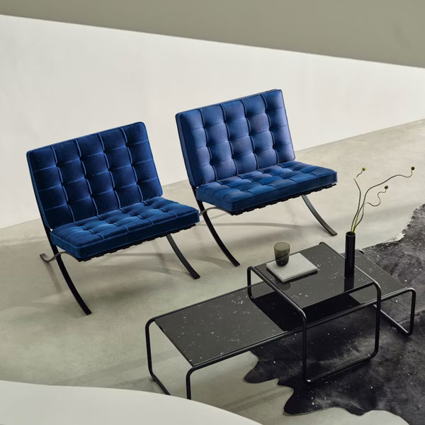 Creata da Ludwig Mies van der Rohe per il suo Padiglione Tedesco all’Esposizione Internazionale di Barcellona del 1929, la collezione Barcelona, con la sua composizione pura, è diventata l’emblema dell’architettura moderna. Dall’elegante struttura a incrocio ai singoli pannelli di rivestimento sapientemente cuciti a mano, ogni sedia Barcelona è un omaggio al connubio tra design moderno, eccezionale artigianalità e meticolosa attenzione ai dettagli.
