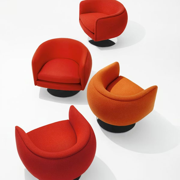 La sedia girevole D’Urso crea un giocoso equilibrio tra formalità e stravaganza, offrendo una rivisitazione moderna della classica poltrona da cocktail.