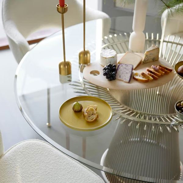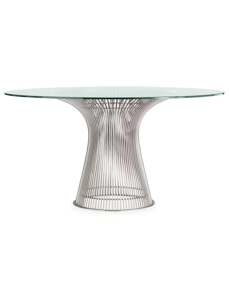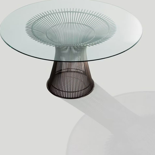 Negli anni ’60, Warren Platner vide un’opportunità. “Sentivo che c’era spazio per quel tipo di design decorativo, delicato e aggraziato che appariva in stili d’epoca come Luigi XV, ma che poteva avere una base più razionale invece di essere una decorazione applicata”, disse. Saldando centinaia di barre d’acciaio curve a telai circolari, Platner raggiunse il suo obiettivo di creare una forma che fungesse allo stesso tempo da struttura e ornamento. Il suo iconico tavolo da pranzo è un punto focale celebrato nelle sale da pranzo dal 1966.
