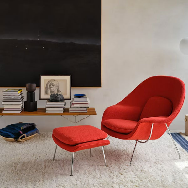 Progettata da Eero Saarinen nel 1948, la rivoluzionaria Womb Chair sfidava le convenzioni dell’epoca su cosa potesse essere una sedia, sia nelle tecniche e nella tecnologia che ne hanno permesso la forma, sia, in ultima analisi, nella sua funzione non prescrittiva. La sua adattabilità a tutte le posture evoca il comfort primordiale dell’utero, la sicurezza che Eero credeva le persone desiderassero. Al momento del suo lancio, il designer osservò: “Ora, più che mai, abbiamo bisogno di rilassarci”. Le sue parole, e la Womb Chair, rimangono oggi più che mai attuali.
