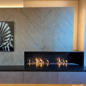 Bruciatore a bioetanolo automatico. Accensione e gestione con telecomando. 4 regolazioni della fiamma. Capacità 10,3 litri; autonomia 5.50– 12.30 ore; Potenza max 11,5 kW.